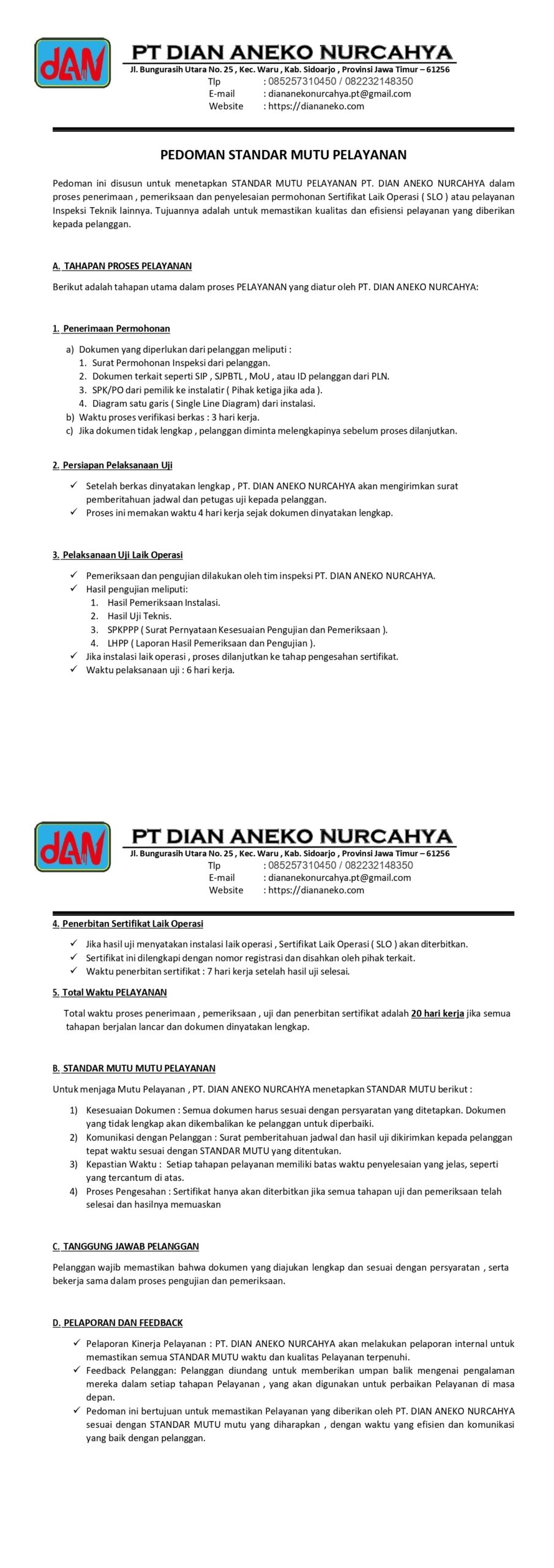PEDOMAN STANDAR MUTU PELAYANAN PT. DIAN ANEKO NURCAHYA ( klik untuk membuka / menutup )
